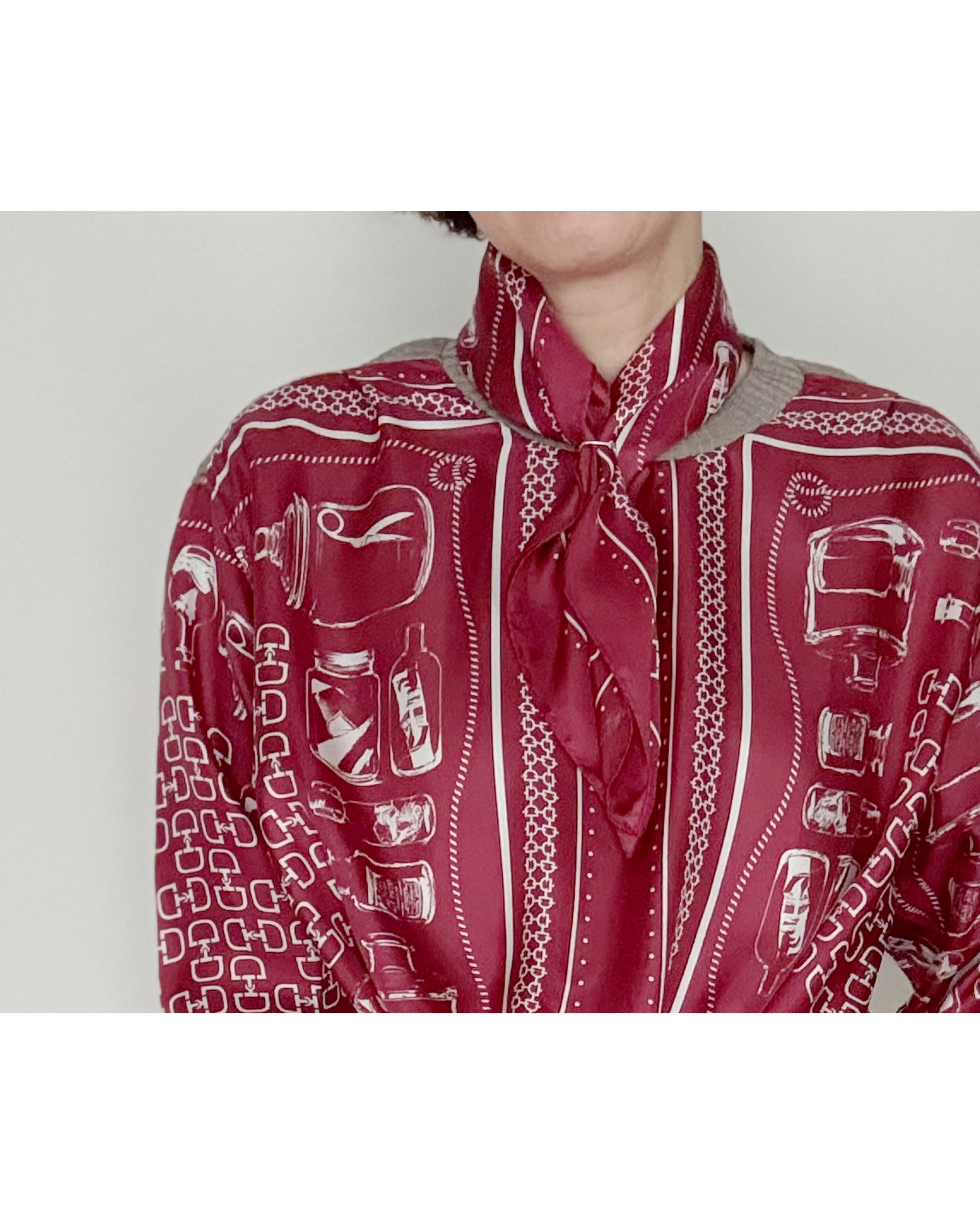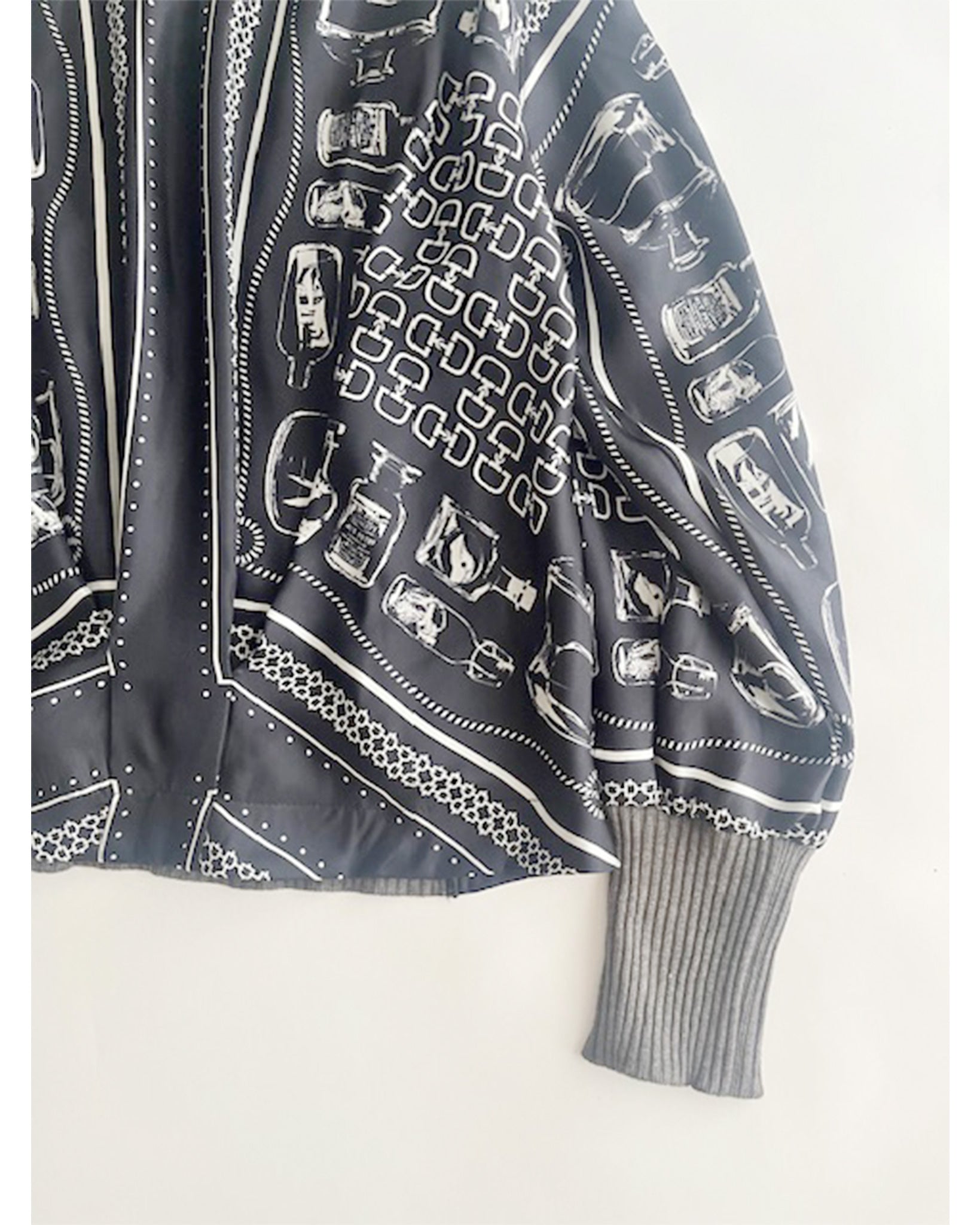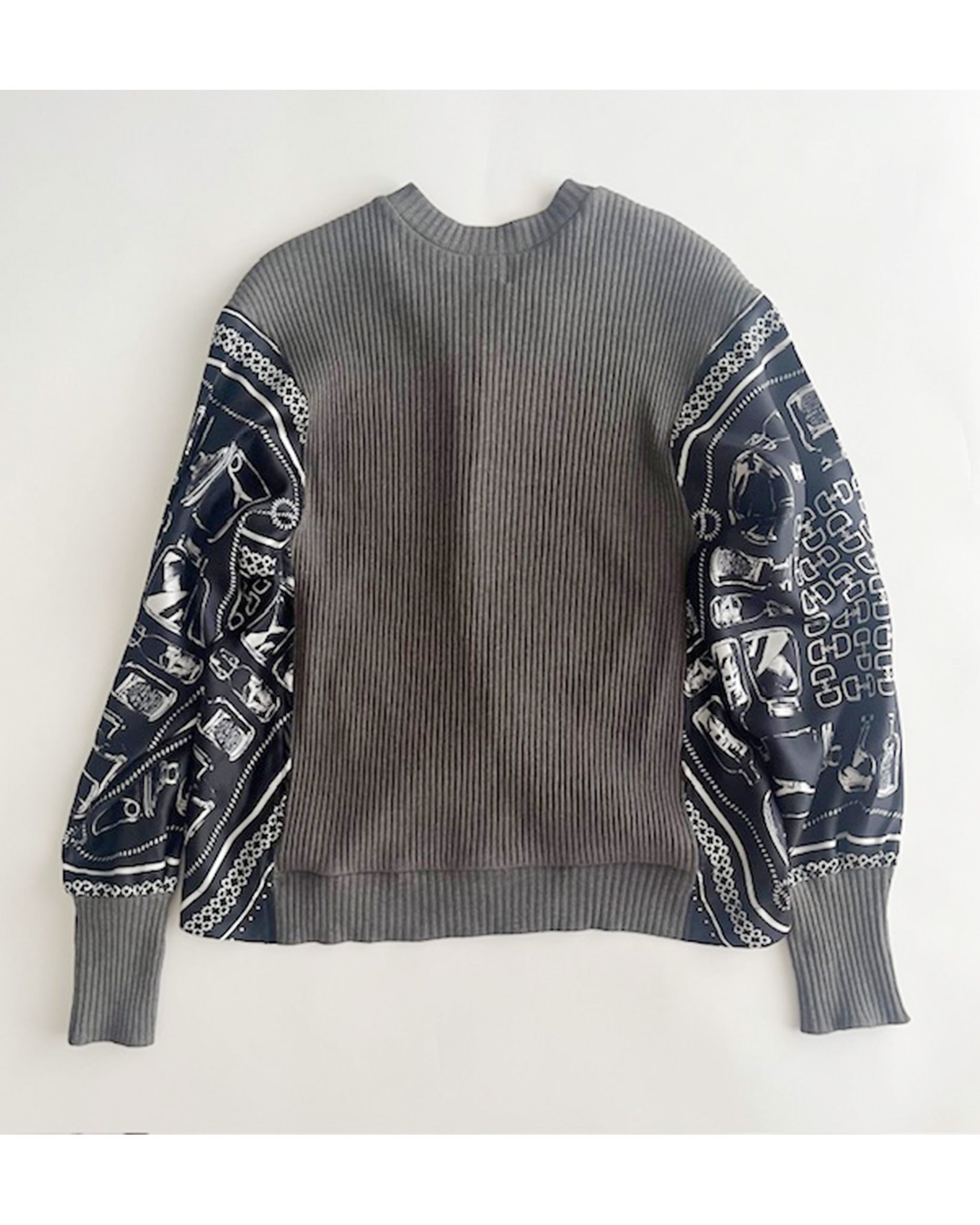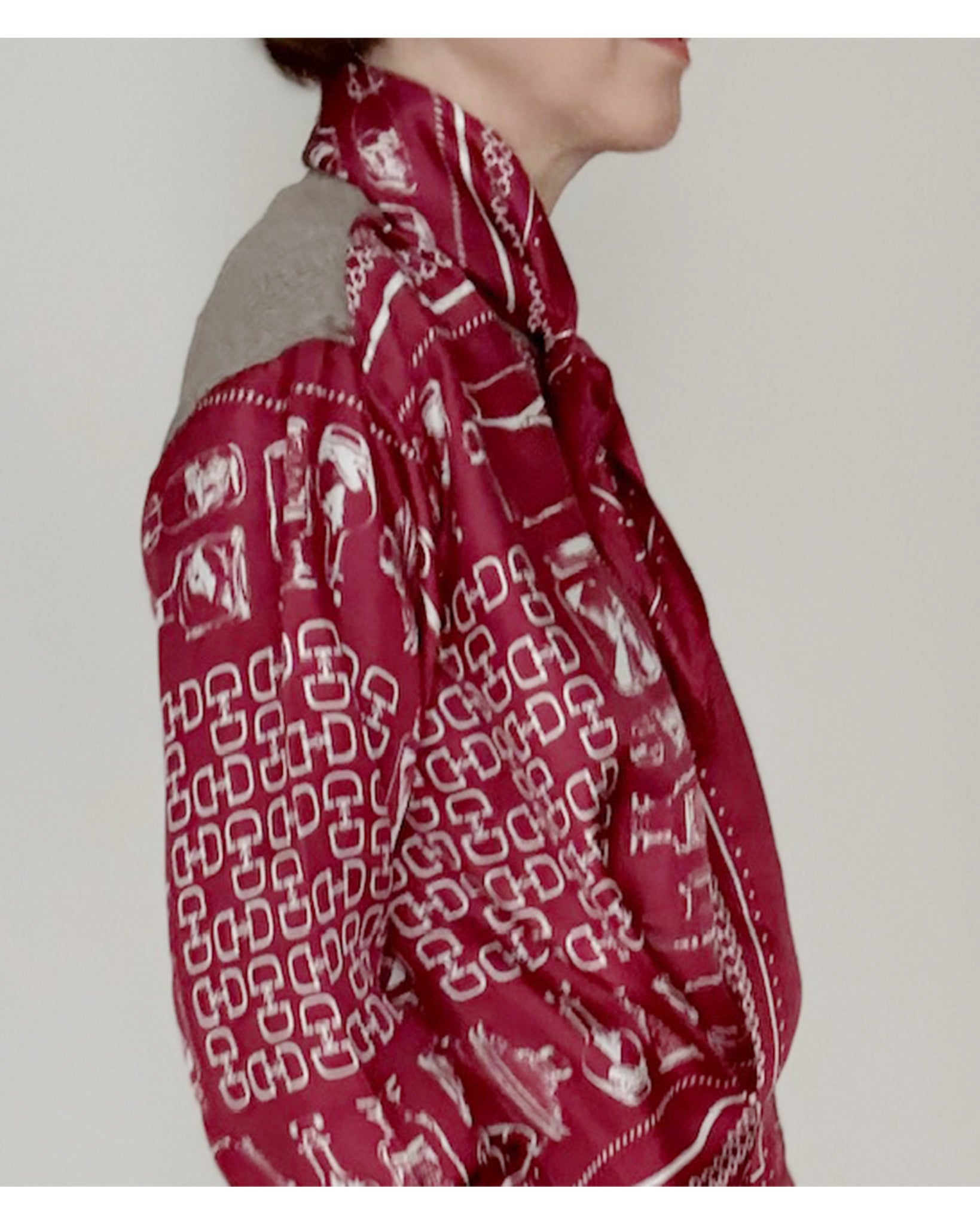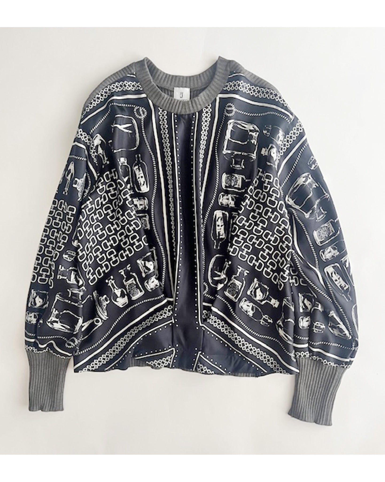 シルク100%のオリジナルプリントで展開するスカーフ生地を利用したプルオーバー。